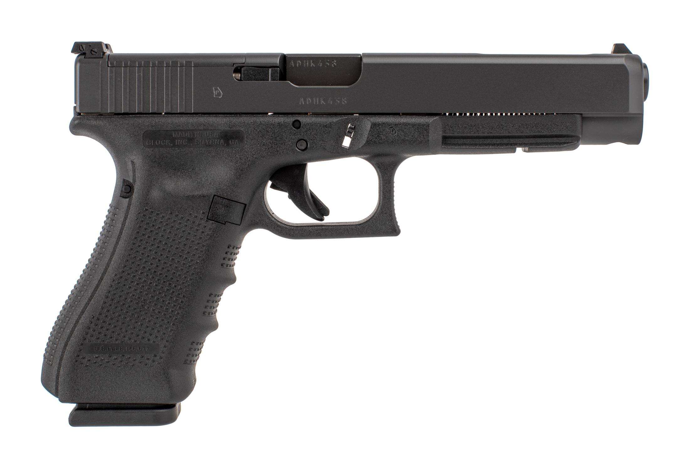 This Gen4 option includes the factory Glock grip extensions (medium and large) and the beaver tail grip extensions (medium and large), three full capacity magazines, large ambidextrous magazine release, 3.5lb factory connector, extended slide release, and adjustable rear sight. Also includes the factory hard case and cleaning brush and rod.