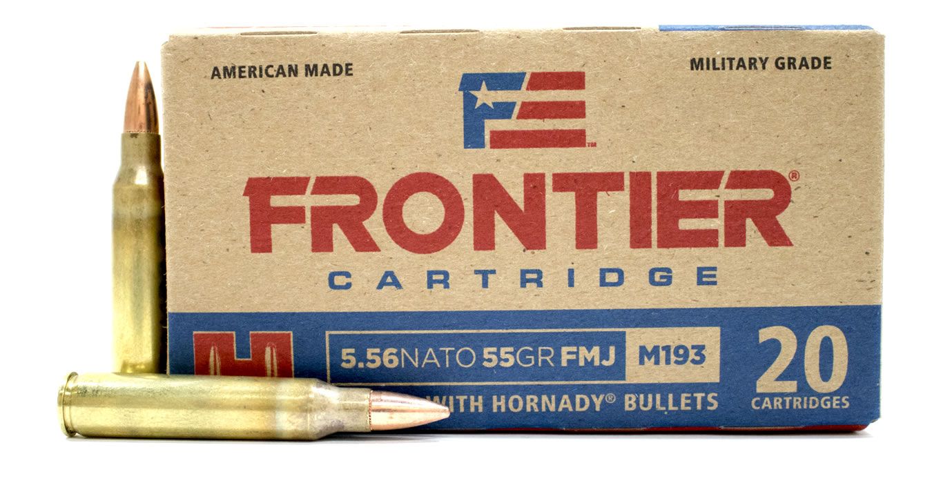 New 5.56 NATO Frontier Cartrigdes feature Hornady bullets. State-of-the-industry loading techniques and quality control procedures ensure the reliability of every Frontier® Cartridge round. Frontier® Cartridge offers ammunition configured for a wide range of shooters and applications, everything from plinking, target shooting and hunting to law enforcement training and self-defense. In addition to Hornady® bullets in a variety of offerings, Frontier® Cartridge features brass cartridge cases and military-grade boxer primers and propellant.